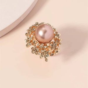 Gold Flower Pearl Ring: Adjustable Brass Floral Statement Ring