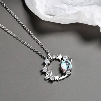 This exquisite Silver Planet Wreath Necklace is a celestial work of art. Its design combines a curved wreath frame with a beautiful planet centrepiece, creating a timeless piece that’s sure to become a cherished heirloom. A truly celestial addition to any jewellery collection.