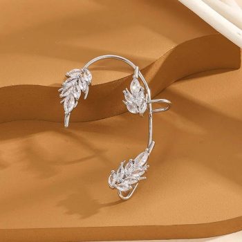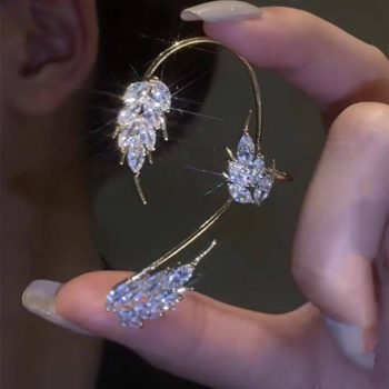 Rubicon Jewels 2pcs/1 Pair Douyin spring flash diamond leaf feather zircon new jewellery trend Metal Stud Earring ()